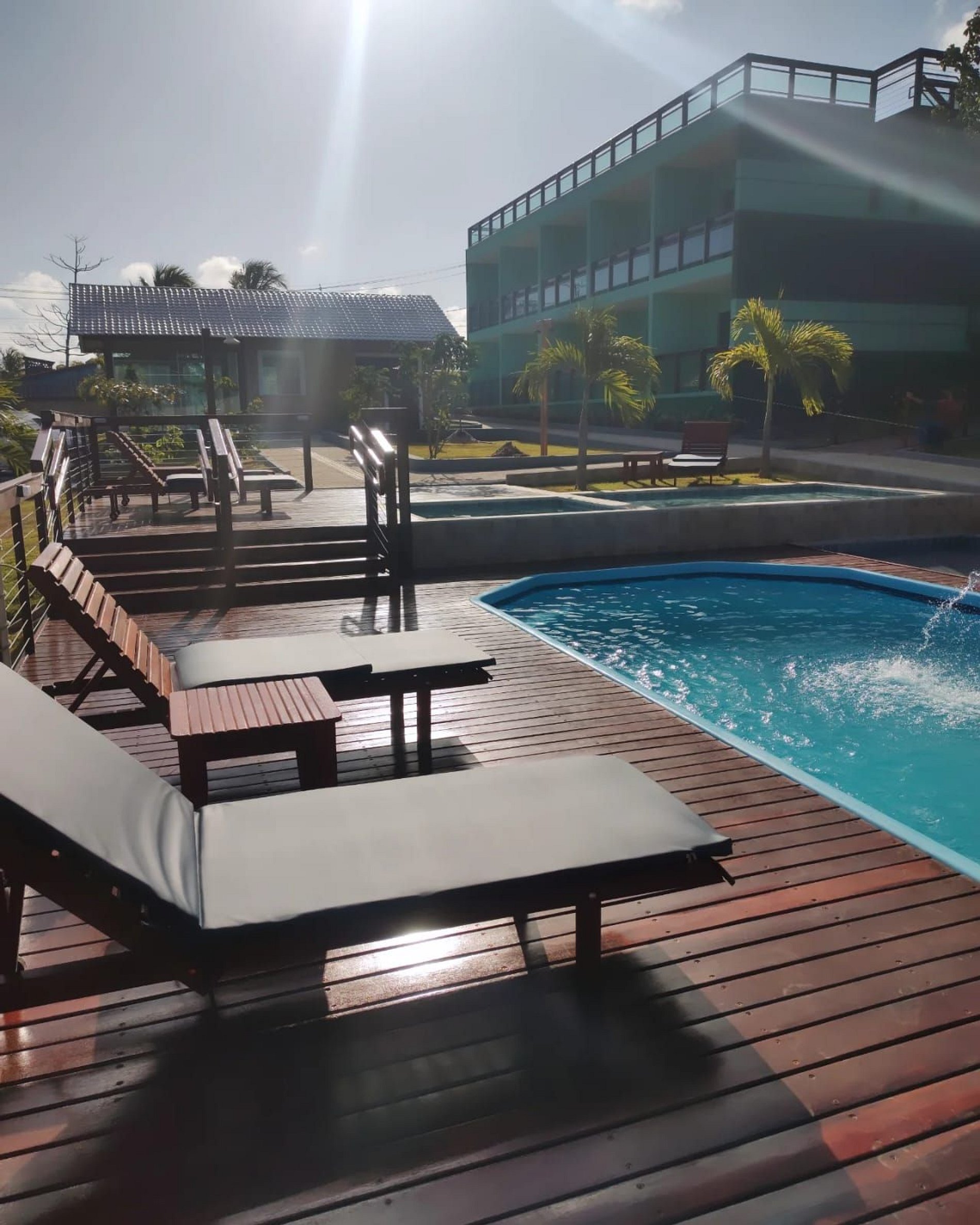 Empreendimento recém construído, possuí área de lazer com três piscinas, sendo uma adulto com hidromassagem, uma intermediária (55cm de profundidade) e outra para crianças (30cm de profundidade). Conta com recepção dotada de Smart TV, sofá, mesa de apoio e frigobar com água, refrigerante, suco e cervejas (consulte valores) para maior comodidade durante checkin e checkout. Os Flats possuem banheiro privativo, varanda, duas camas de casal, sendo um colchão casal tradicional - firme - molas ensacadas - e outro colchão de espuma - firme - 1,20m de largura. A cozinha conta com cooktop de indução, cafeteira, sanduicheira, cutelaria básica e frigobar.